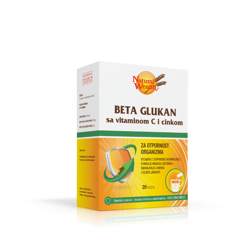 Natural Wealth® Beta Glukan zahvaljujući svom sastavu doprinosi poboljšanju imunog odgovora i odbrambenih reakcija na viruse, bakterije, gljivice i toksine koji predstavljaju pretnju po Vaše zdravlje Preporučuje se za jačanje svih imunoloških funkcija, za smanjenje intenziteta i vremena trajanja alergijskih reakcija kao i osetljivosti organizma na alergene, za poboljšanje opšte otpornosti organizma i u rekonvalescenciji (oporavku nakon bolesti), kod učestalih virusnih i bakterijskih infekcija i povećanog stresa, kod loše i neredovne ishrane, za redukciju ukupnog holesterola, LDL-a i serumskih triglicerida, kao pomoć kod održavanja fiziološkog glikemijskog profila kod osoba koje imaju određene probleme u metabolizmu glukoze i kao vrlo moćan antioksidans. Prijatnog je ukusa crne ribizle, a pogodan je i za vegeterijance.
